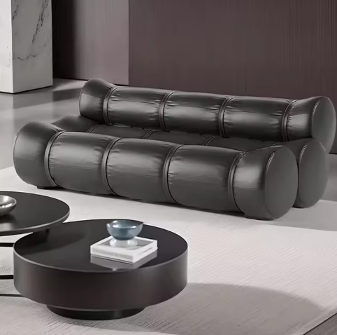 The Cylora Sofa is a statement piece for those who appreciate modern design and customization. This unique sofa features horizontally arranged cylindrical cushions that create a sculptural look and optimal seating comfort. Available in a variety of fabrics (such as bouclé, leather, or velvet), colors, and sizes, it perfectly complements your interior design vision. Ideal for high-end living rooms, design studios, or hospitality settings.