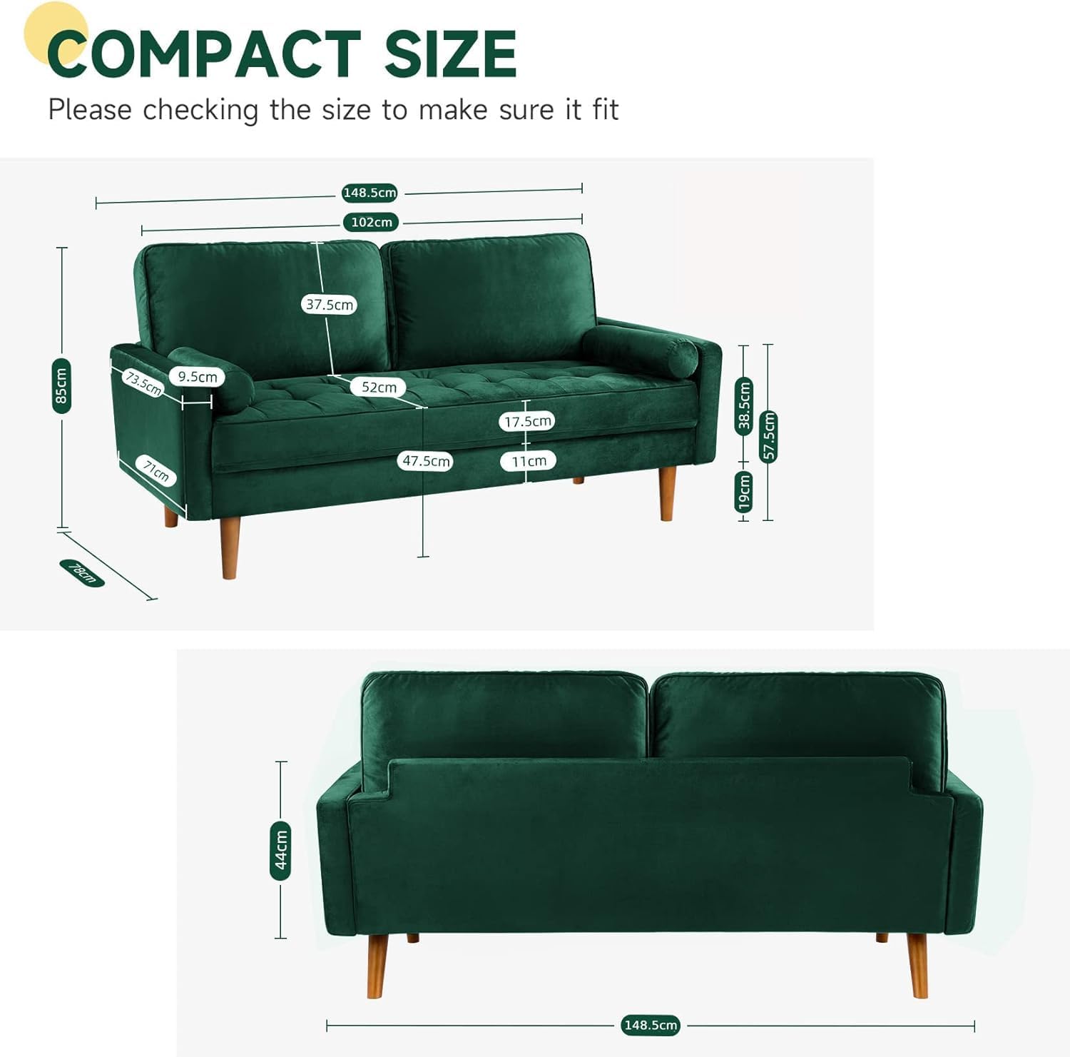 Het compacte, evenwichtige design past moeiteloos in zowel moderne stadsappartementen als klassieke woonkamers. De stevige houten poten geven een natuurlijke touch, terwijl de zachte zitkussens uitnodigen tot ontspanning.
